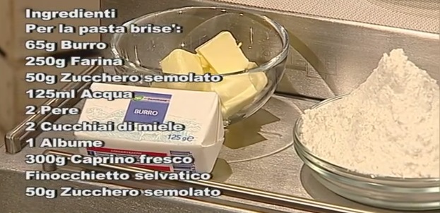 La ricetta della torta rovesciata con pere e caprino di Fabio Campoli, proposta all’interno del programma condotto da Davide Mengacci, “Ricette all’italiana“.