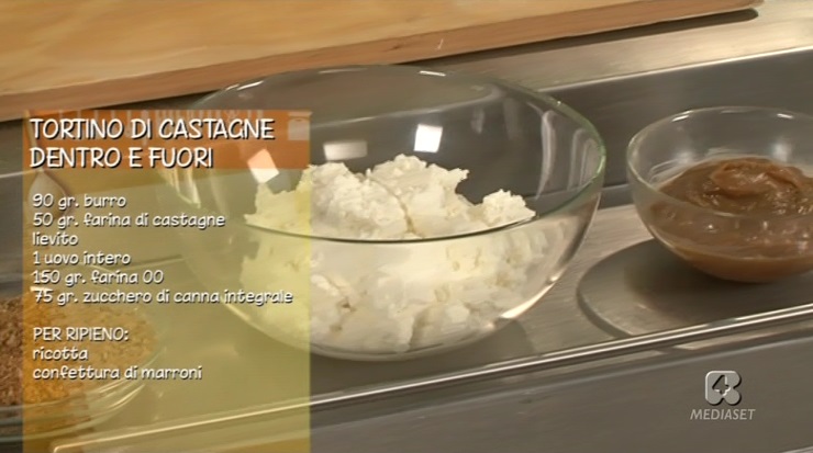 Lo chef Fabio Campoli, all’interno della puntata odierna di Ricette all’italiana, il programma di Rete4 condotto da Davide Mengacci, ha preparato un goloso dessert autunnale: il tortino di castagne dentro e fuori.