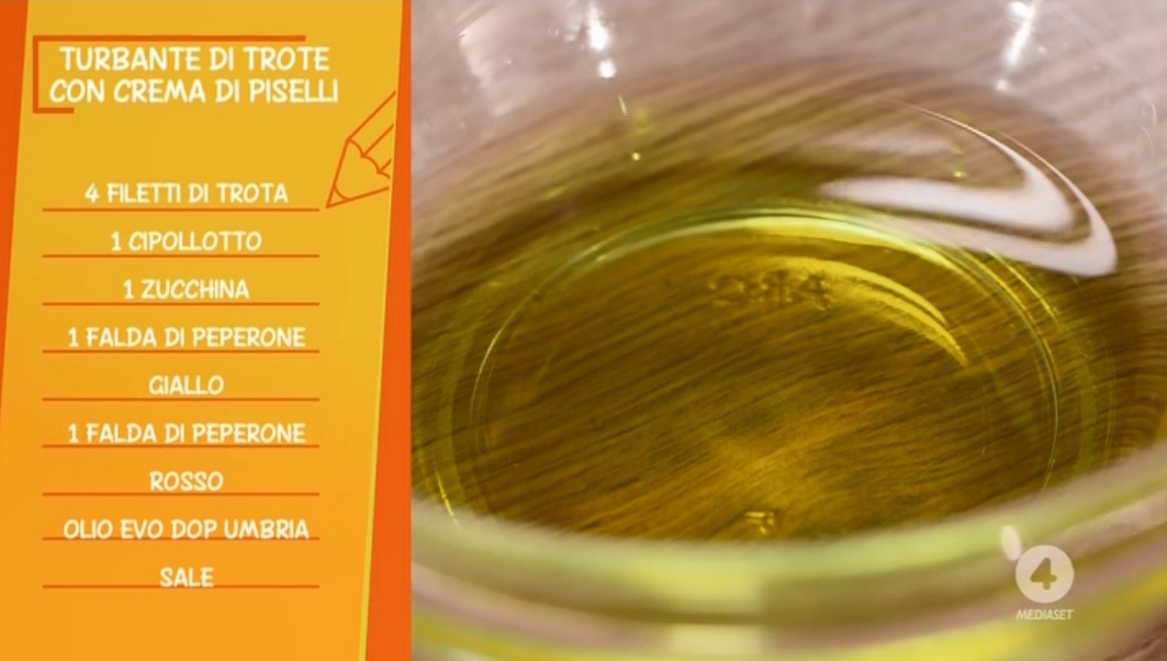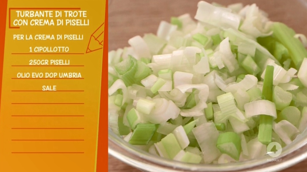 La cuoca casalinga Anna Moroni, all’interno della puntata odierna della nuova stagione di Ricette all’italiana, il programma di Rete4 condotto da Davide Mengacci, in onda dal lunedì al sabato prima e dopo il Tg4, ha preparato il turbante di trote con crema di piselli.