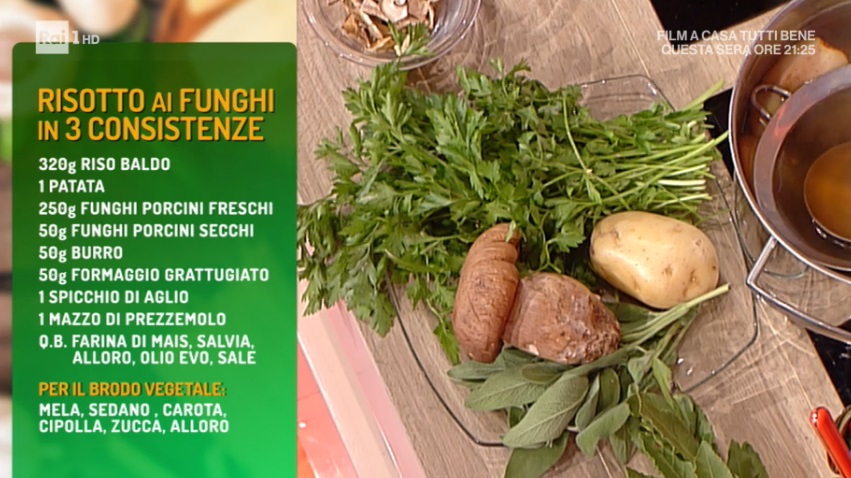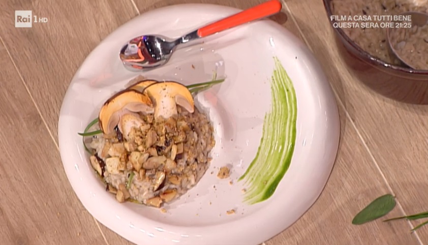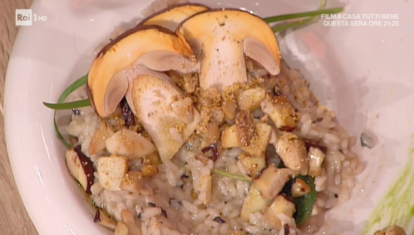 Oltre a Persegani, un altro ‘cavallo pazzo’ ma di razza: Sergio Barzetti. Mister Alloro, dopo il secondo piatto della scorsa settimana a base di peperoni, torna al primo amore, il risotto, preparandone una versione inedita: risotto ai funghi in tre consistenze.