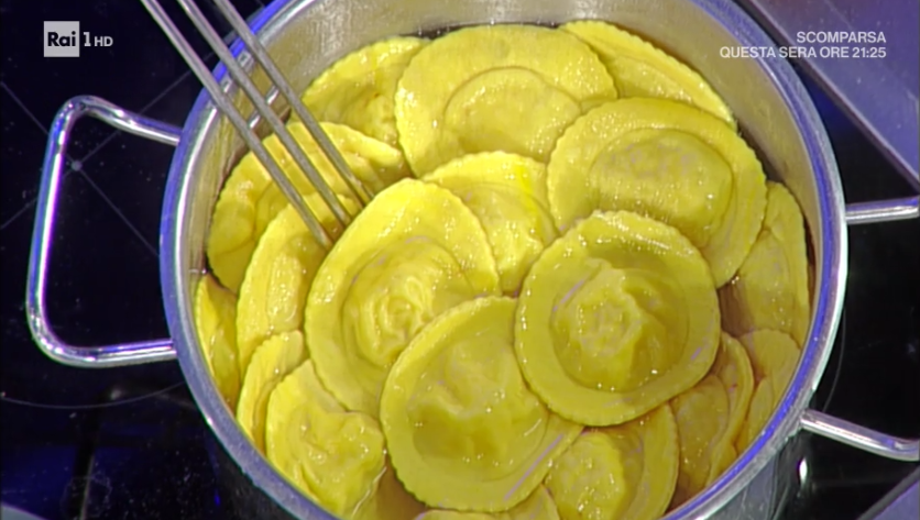 Tiriamo la sfoglia sottile. Formiamo dei mucchietti di risotto freddo su metà sfoglia. Copriamo con l’altra metà e facciamo aderire bene, in modo da far uscire tutta l’aria. Ritagliamo i ravioli e li lessiamo in acqua bollente e salata per circa 4 minuti.