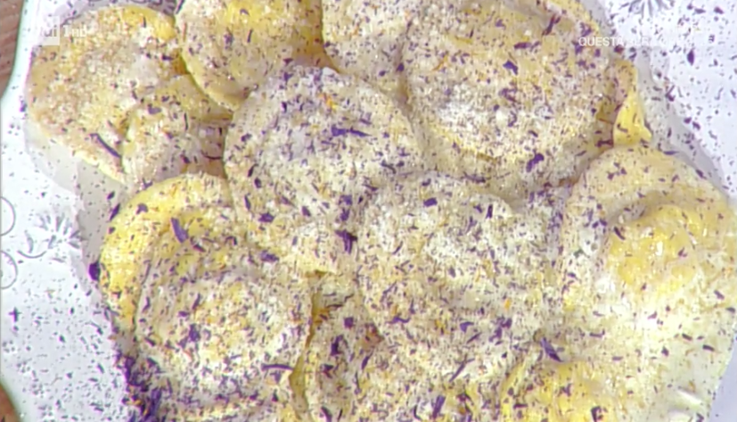 - Pasta: 250 g farina di farro bianco, 2 uova, 1 tuorlo, 1 pizzico di zafferano in pistilli ammollato in poca acqua