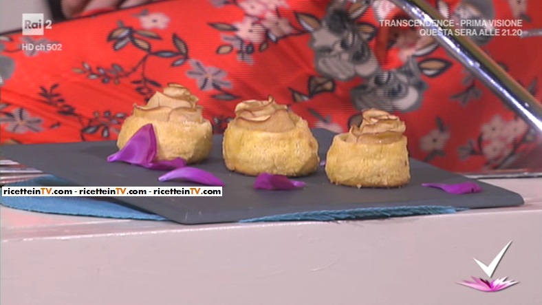 - Per le rose di mela: 300 g pasta frolla, 2 mele rosse, 100 g marmellata di albicocche, 25 g mandorle in polvere, 20 g zucchero di canna, mezzo cucchiaio di cannella, 1 tuorlo d’uovo, 1 cucchiaio di latte