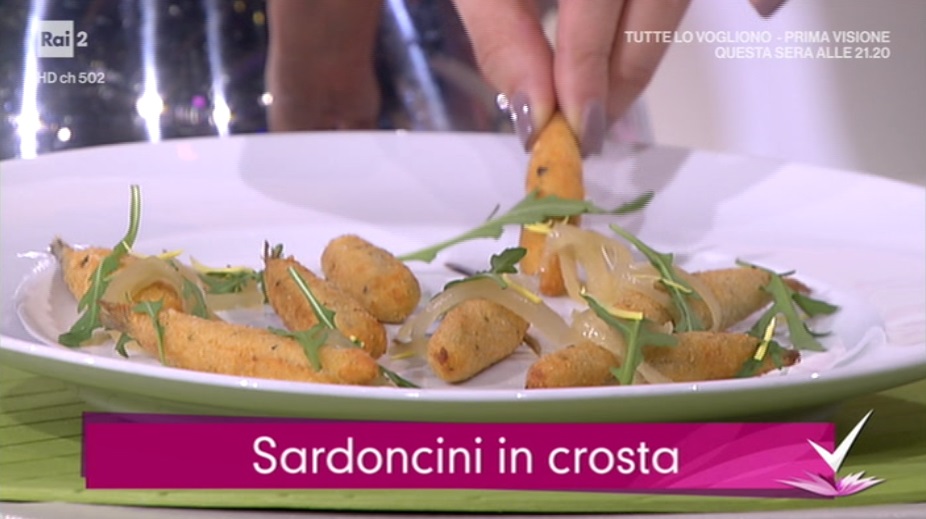 - 40 g sardoncini freschi, 200 g farina 00, 200 g pangrattato, 50 g pecorino grattugiato, 5 g zenzero fresco, 2 uova, 2 cucchiai di miele, 2 cucchiai di aceto di vino bianco, aceto balsamico, un pizzico di origano, un mazzo di rucola, 1 cipolla, 1 rametto di rosmarino, 1 peperoncino, olio evo, sale e pepe