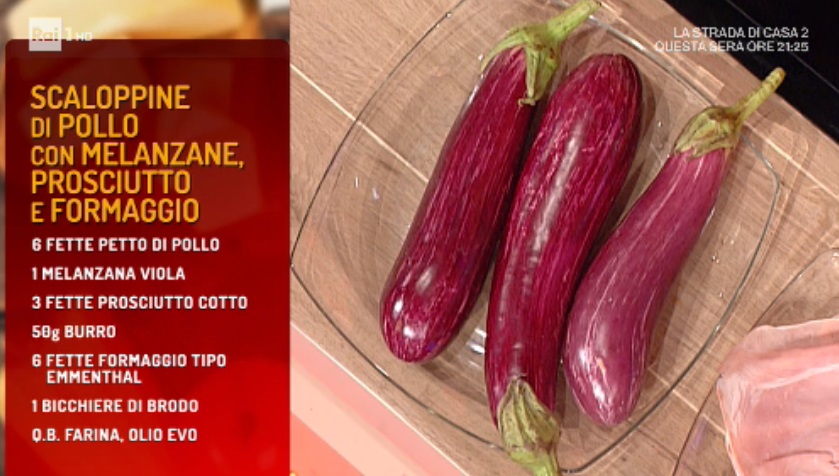 Alessandra Spisni tiene banco anche quest’oggi con la sua proposta golosa. Un secondo piatto a base di pollo, carne economica e salutare. Ecco le scaloppine di pollo con melanzane prosciutto e formaggio.