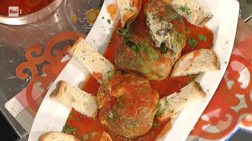 Anche oggi, Anna Moroni irrompe in cucina con il suo carico di simpatia e sapienza. Un piatto primaverile, povero e, ovviamente, goloso. Ecco le scarole imbottite alla cilentana.