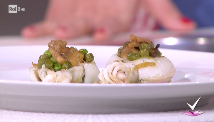Prendiamo le seppie rimaste, le puliamo e le farciamo, come fossero delle barchette, con il ripieno di seppie e piselli piccante. Le disponiamo su una teglia, le copriamo con la carta stagnola e inforniamo a 180° per 15 minuti.