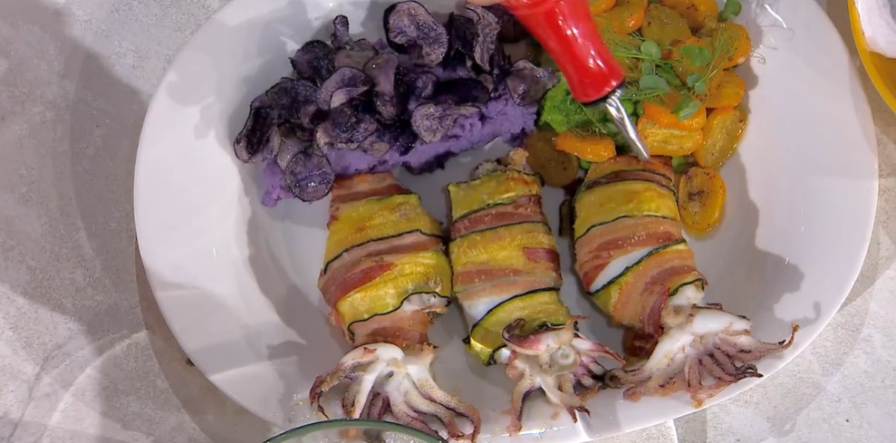 Antonella Ricci esalta gli ortaggi prodotti da Mat The Farmer in un secondo piatto che sa di Puglia. La cuoca salentina, infatti, prepara un secondo di mare, delle sontuose seppie farcite.