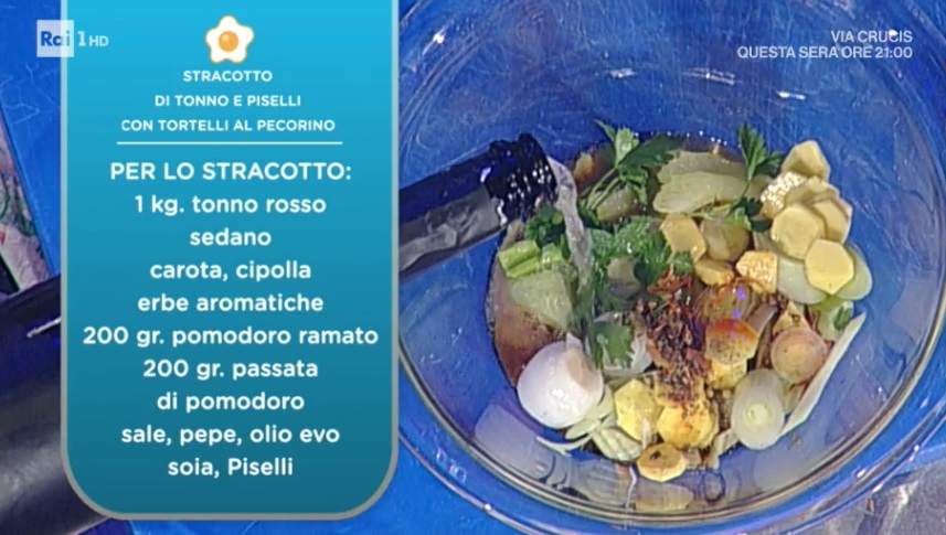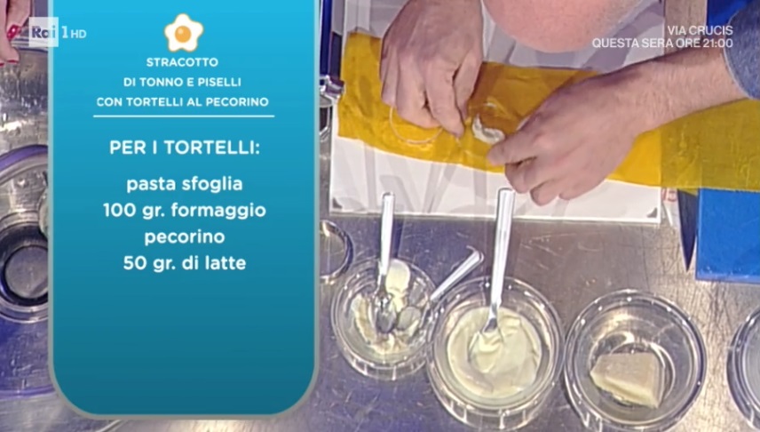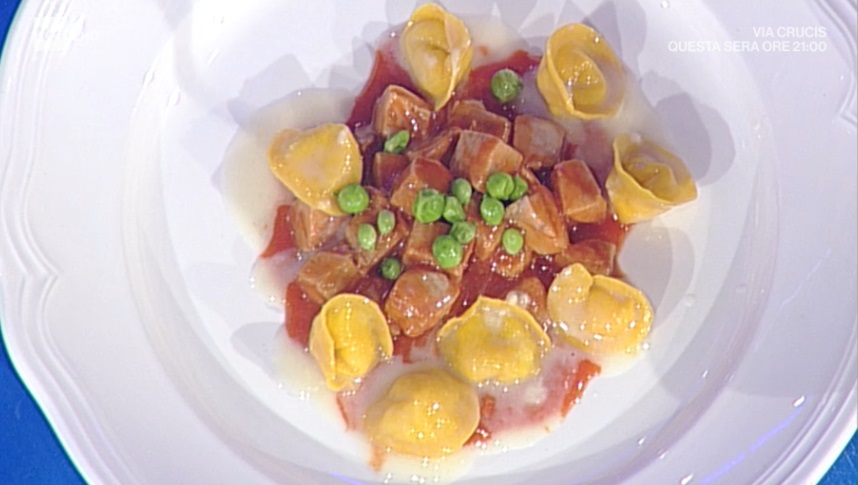 Venerdì pesce con Gianfranco Pascucci. Lo chef stellato propone un primo piatto di Pasqua raffinato e goloso. Ecco lo stracotto di tonno e piselli con tortelli al pecorino.