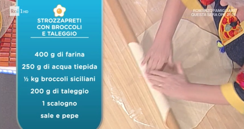 - 400 g farina, 250 g acqua tiepida, mezzo Kg broccoli siciliani, 200 g taleggio, 2 scalogno, sale e pepe