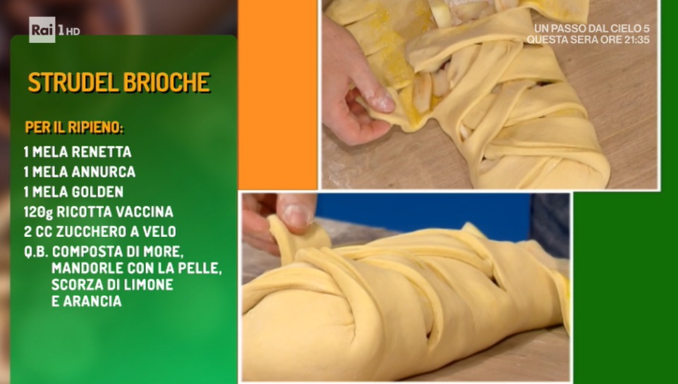 Sergio Barzetti, per la gioia dei più golosi, prepara uno dei suoi dolci semplici e genuini. Oggi, in particolare, una versione inedita del classico strudel, amatissimo dolce di stagione, poichè a base di mele. Ecco lo strudel brioche.