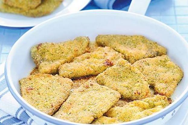 Ingredienti: 600 g di pesce spada a fettine sottili, pangrattato, 2 uova, 40 g di pinoli, 1 spicchio d’aglio, 2 pomodori secchi, 1 ciuffo di prezzemolo, farina, olio extravergine di oliva o di semi di arachidi, sale e pepe.