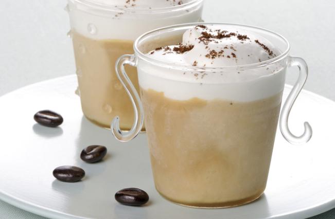 Sgusciate 3 uova, separando tuorli e albumi. Montate i tuorli con 80 g di zucchero fino a ottenere una crema chiara e spumosa. Unite 1 tazzina di caffè e 4-5 chicchi di caffè sbriciolati. Montate 2,5 dl di panna fresca in una ciotola gelata e unitela al composto di tuorli. Poi montate anche gli albumi e amalgamateli al composto. Versate in 6 tazze e fate raffreddare in freezer per 5-6 ore.