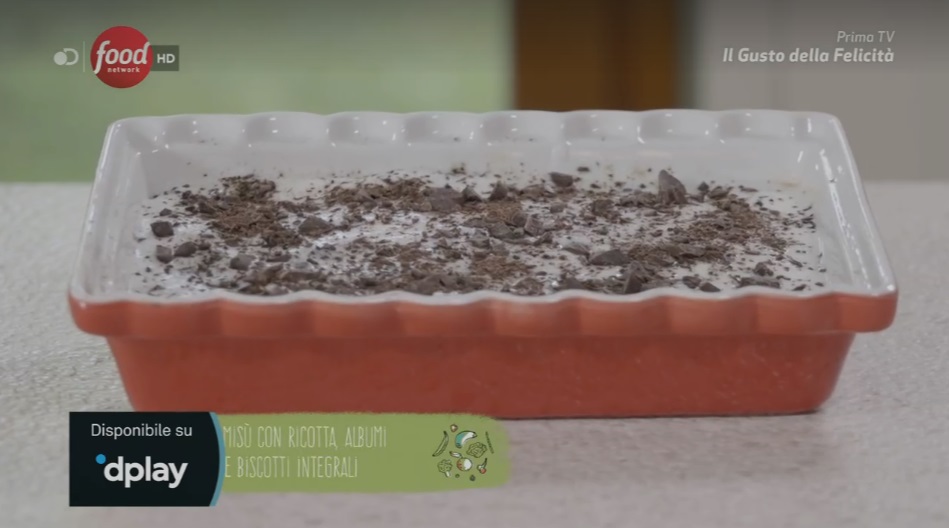 - 400 g ricotta fresca, 4 albumi, qualche tazzina di caffè amaro, 70 g cioccolato fondente, 120-160 g zucchero a velo, 1 cucchiaio di caffè macinato d’orzo, 150 g biscotti integrali