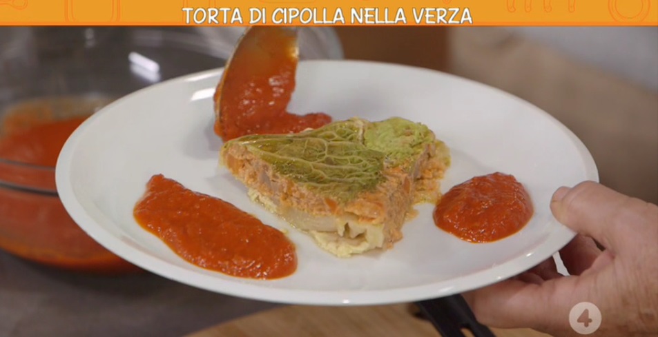 La cuoca casalinga Anna Moroni, assistita da Davide Mengacci, all’interno della puntata odierna di Ricette all’italiana, il programma di Rete4 in onda dal lunedì al sabato prima e dopo il Tg4, ha preparato la torta di cipolla nella verza.