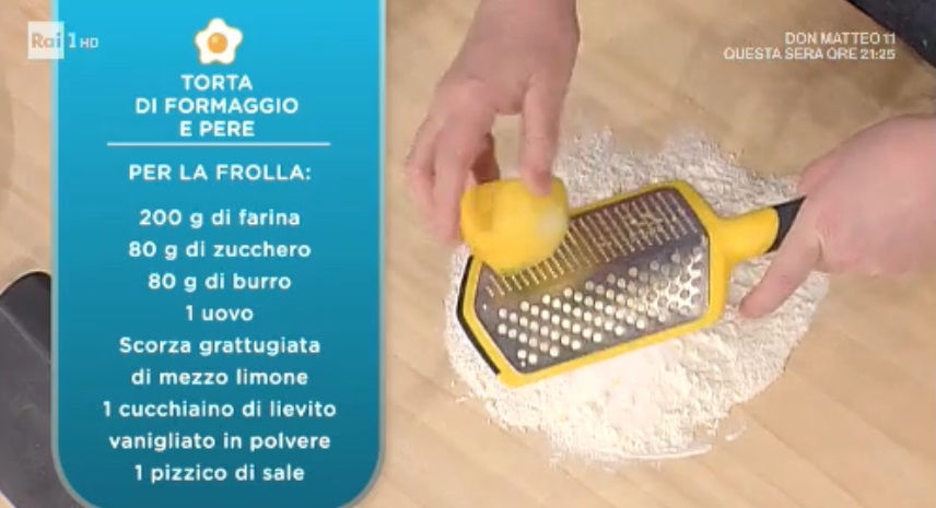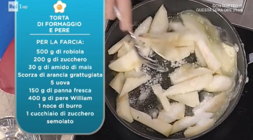 Infine, ritroviamo la simpatia e la golosità di Alessandra Spisni, che oggi ci propone uno dei suoi dolci ‘facili facili’ ma buonissimi. Ecco la torta di formaggio e pere.