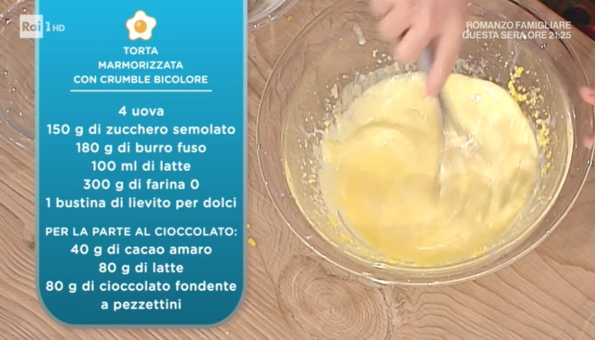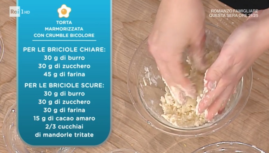 - Briciole chiare: 30 g burro, 30 g zucchero, 45 g farina