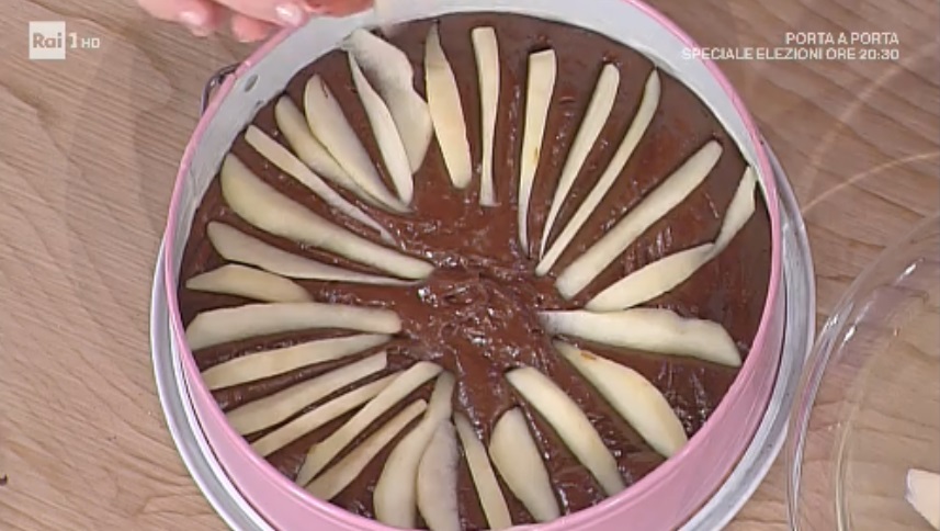 Imburriamo ed infariniamo la tortiera (oppure usiamo lo staccante di Natalia, qui la ricetta), rotonda o da plumcake. Coliamo all’interno l’impasto al cioccolato. Disponiamo sopra, a raggiera, le pere tagliate a fettine sottili. Inforniamo a 180° per 45 minuti circa, forno statico e preriscaldato. Se usiamo lo stampo da plumcake, prolunghiamo la cottura per qualche minuto (vale la prova stecchino!).