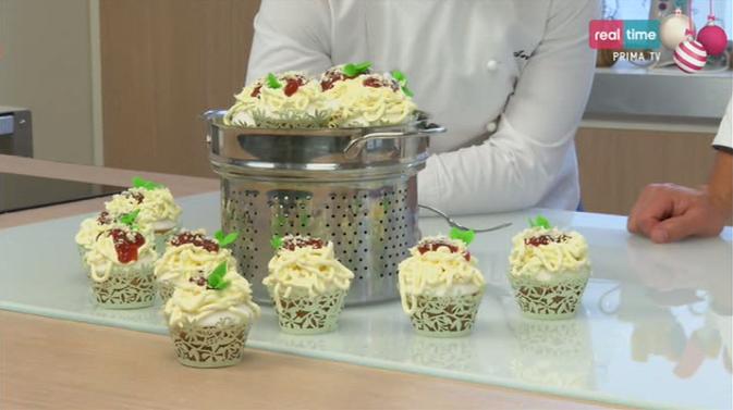 Nella puntata odierna di Torte in corso, il programma di Real Time dedicato al cake design, Renato Ardovino ha preparato dei cupcakes al cioccolato bianco (della spaghettata). Di seguito gli ingredienti necessari ed il procedimento.