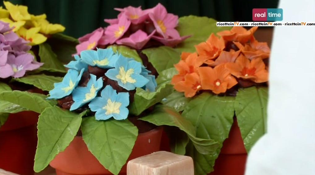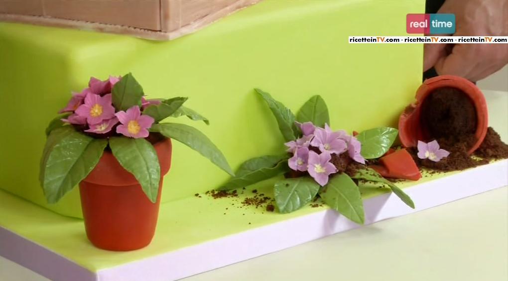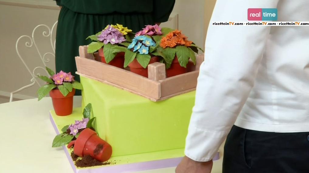 Nella puntata odierna di Torte in corso, a Renato è stata commissionata una torta da Dolores, che ha la passione per il giardinaggio e vuole organizzare una festa per l’arrivo della primavera. Per sorprendere gli ospiti della donna, il nostro cake designer ha pensato di realizzare una torta al cioccolato, con vasetti di coloratissime primule in pasta di zucchero. E’ un trionfo di coloro la composizione che Renato ha battezzato “giardino in fiore“.