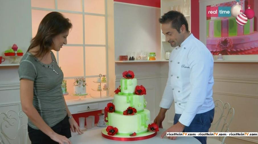 Nella puntata odierna di Torte in corso, a Renato è stata commissionata una torta da Roberta, che intende celebrare il suo quarantesimo compleanno in un centro botanico. Per l’occasione, il cake designer ha proposto una torta “primaverila“, un “trionfo di papaveri”, con una farcitura di crema al pistacchio. Dai desideri di Roberta è nata “La primavera più bella“.