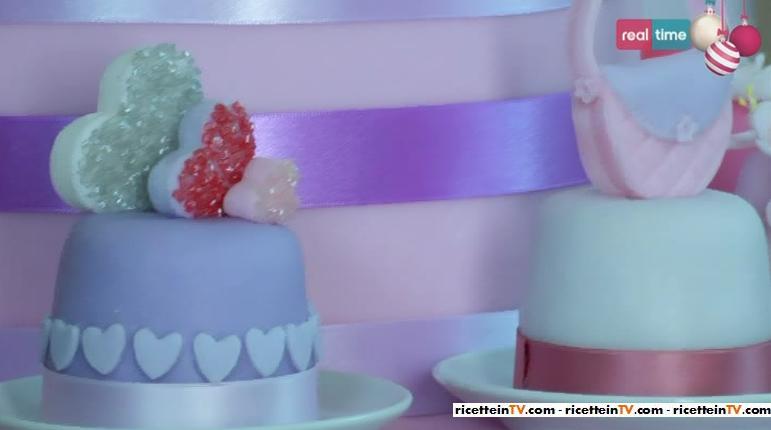 Nella puntata odierna di Torte in corso, a Renato è stata commissionata una torta da Giovanna, che ha organizzato una rimpatriata con le ex compagne del liceo. Per rendere più piacevole il pomeriggio tra ragazze, il nostro cake designer ha pensato di realizzare delle minicake agli agrumi, con decori diversi, ma un unico denominatore: la femminilità. Un trionfo di borsette, cuoricini e fiorellini rosa per la composizione che Renato ha battezzato “Piccole confidenze“.