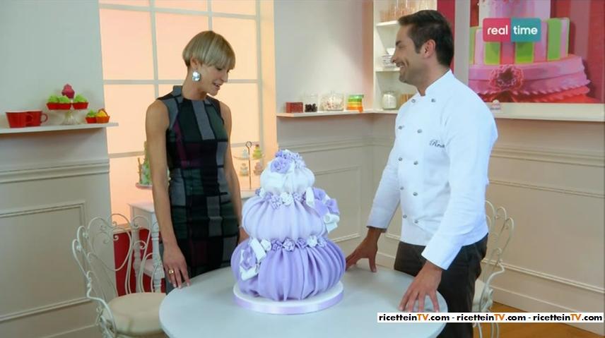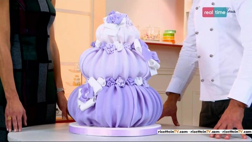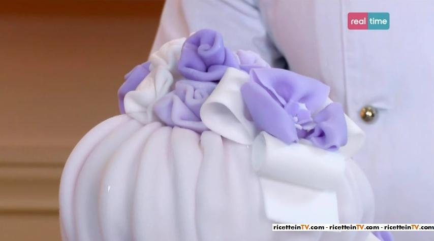 Nella seconda puntata di Torte in corso, a Renato è stata commissionata una torta da Annarita, mamma della piccola Lidia, che si appresta a festeggiare la sua comunione. Per l’occasione, il cake designer ha creato la torta “Soffio di glicine“.