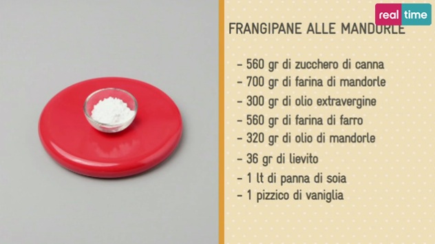 Nella puntata odierna di Torte in corso, Renato propone la ricetta del frangipane alle mandorle, che potrete utilizzare come base per le vostre torte. Nella foto trovate gli ingredienti necessari, di seguito il procedimento.
