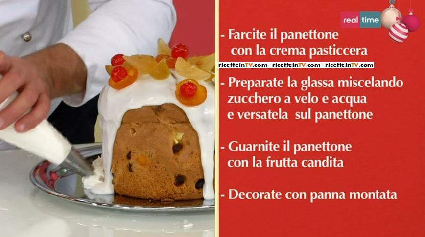 Nello spazio “SOS Renato“, all’interno della puntata odierna di Torte in corso, una telespettatrice romana, Giovanna, scrive a Renato affinchè possa darle un consiglio riguardante una delle portate più attese del pranzo di Natale: il dolce. Vorrebbe stupire i suoi ospiti presentando in tavola un panettone che sia diverso dal solito panettone uvetta e canditi. Valutando le esigenze della spettatrice, il nostro pasticcere ha suggerito delle idee che permettano a Giovanna di rendere “speciale il più classico dei dolci di Natale“. Nella foto sottostante trovate l’elenco degli ingredienti necessari ed i passaggi che dovrete eseguire per realizzare il dolce.