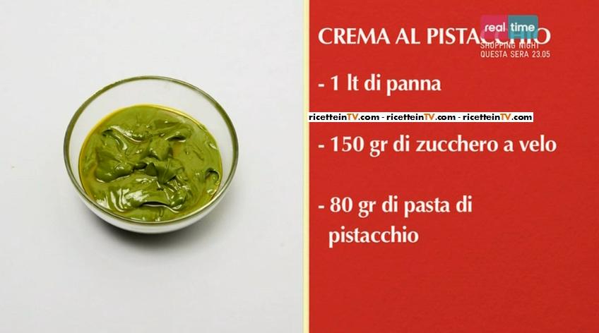 Mettete la panna nella planetaria insieme allo zucchero a velo, e la avviate a media velocità. Montata la panna, incorporatevi la pasta di pistacchio (potete recuperarla nei negozi biologici). Amalgamare per bene e la crema è pronta.