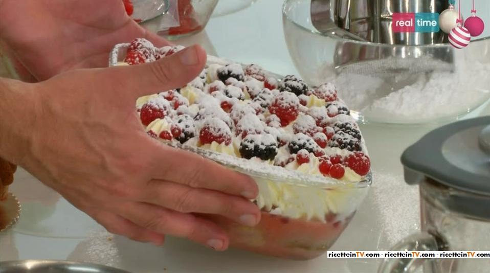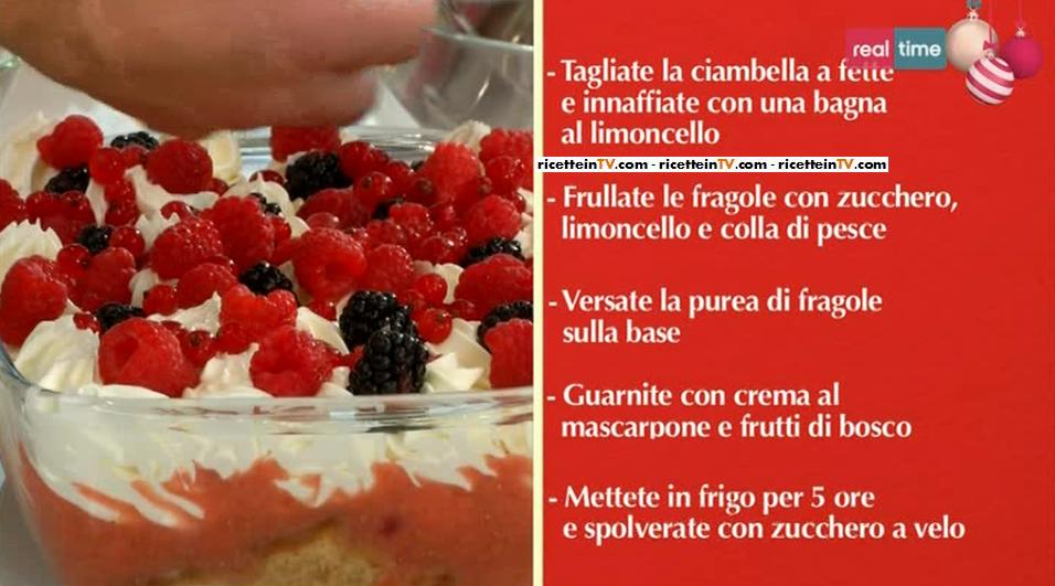 Nella puntata odierna di Torte in corso, Renato propone una ricetta ‘di recupero‘, ovvero utile a recuperare quelli che volgarmente definiamo ‘avanzi’, in questo caso un ciambellone mal riuscito, perchè un po’ troppo asciutto. Si tratta della ricetta di un goloso tiramisù alternativo, con fragole e frutti di bosco (in alternativa, Renato consiglia di ‘pucciarlo’ nel latte, la mattina; ma questo lo sapevamo già…). Nella foto sottostante trovate l’elenco degli ingredienti necessari ed i passaggi che dovrete eseguire per realizzare il dolce.