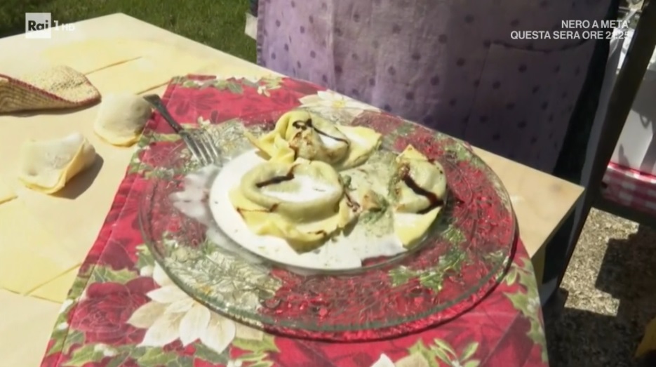 Su ciascun quadratone mettiamo una noce di ripieno. Richiudiamo a mezzaluna e sigilliamo alla perfezione, facendo uscire tutta l’aria. Diamo la forma dei tortelloni e li cuociamo in acqua bollente e salata.