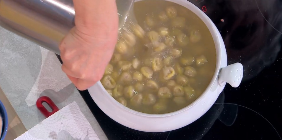 Cuociamo nel brodo di carne fino a quando vengono a galla, spegniamo il fuoco e li lasciamo fino a quando fanno le grinze, quindi serviamo nella zuppiera.