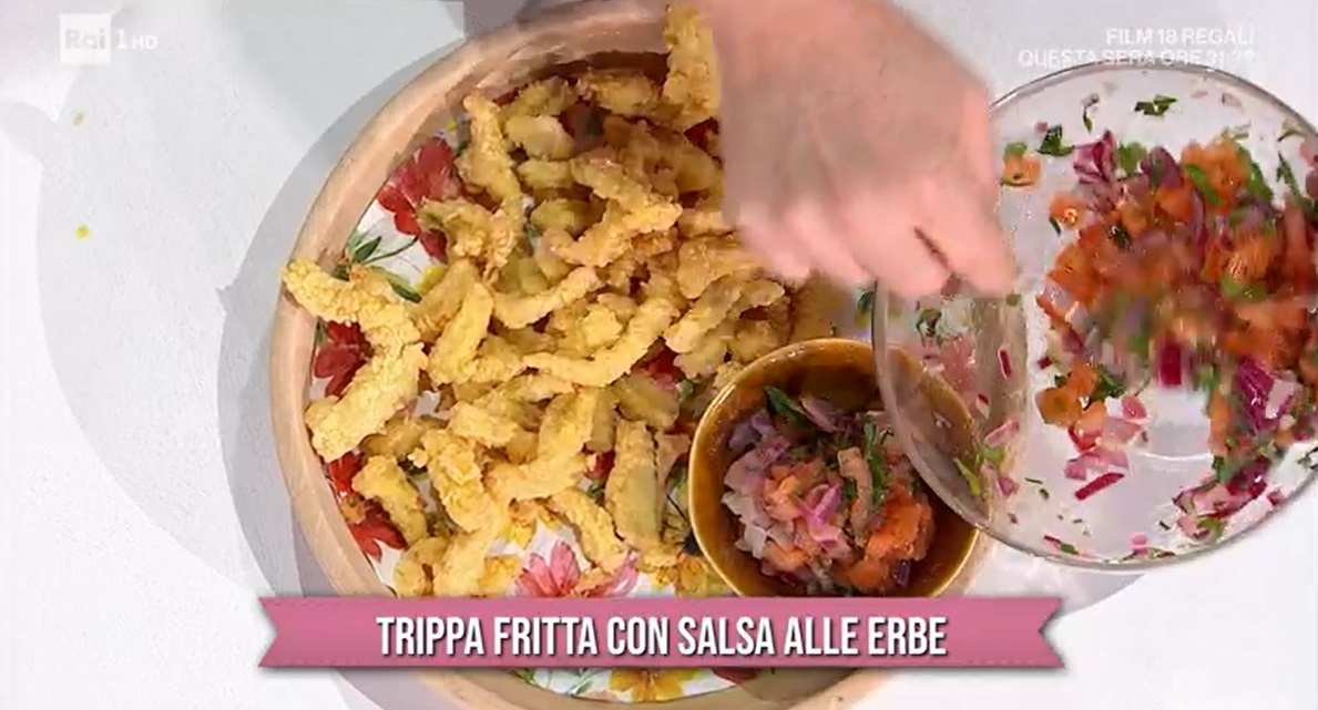 Il ‘portatore sano di buonumore’, Daniele Persegani, torna nel bosco di Antonella per preparare un piatto che racconta le sue origini, ma le reinventa. Vediamo come preparare la trippa fritta con salsa alle erbe.