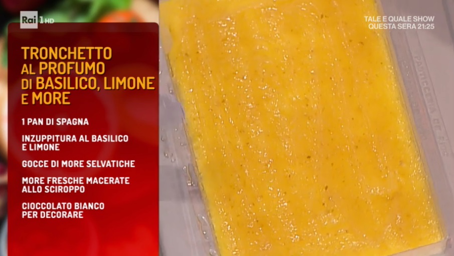 - Inzuppitura al basilico e limone: 150 g acqua, 175 g zucchero, buccia di mezzo limone, 6 foglie di basilico, mezza bacca di vaniglia