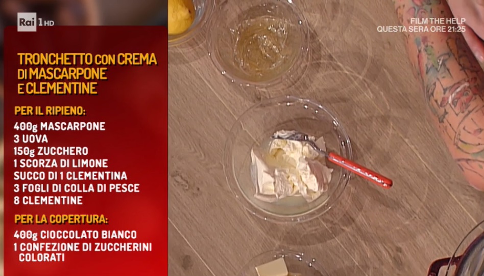 Diego Bongiovanni riapre la parentesi ‘food p0rn‘ del programma, tanto odiata dalla giuria ed amata dal pubblico da casa. Oggi, in particolare, un dolce godurioso a base di clementine, dolcissimo frutto di stagione. Ecco il tronchetto con crema di mascarpone e clementine.