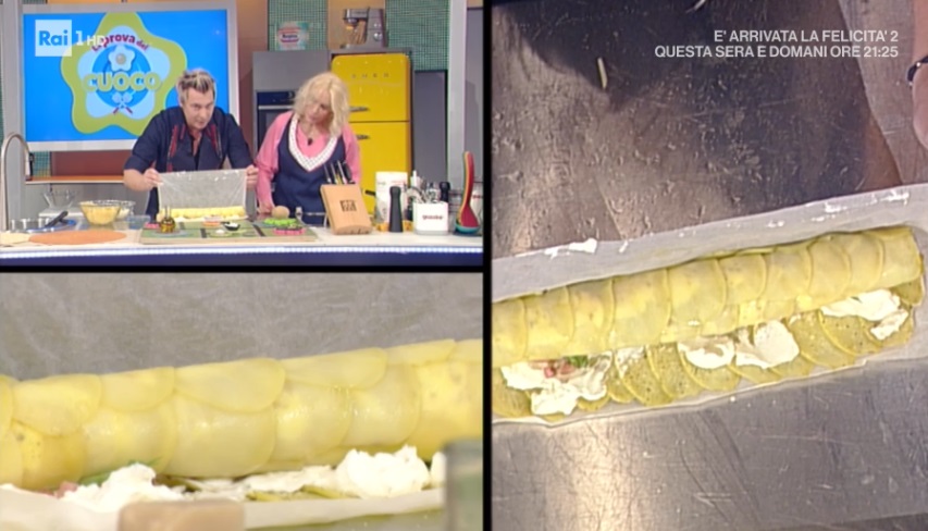 Arrotoliamo, aiutandoci con la carta da forno, stretto, in modo da ottenere un rotolo. Spolveriamo con altro formaggio grattugiato e lo cuociamo in forno a 220° per 10 minuti, avvolto nella carta forno. A questo punto apriamo la carta forno e cuociamo ancora, funzione grill, facendolo dorare perfettamente.