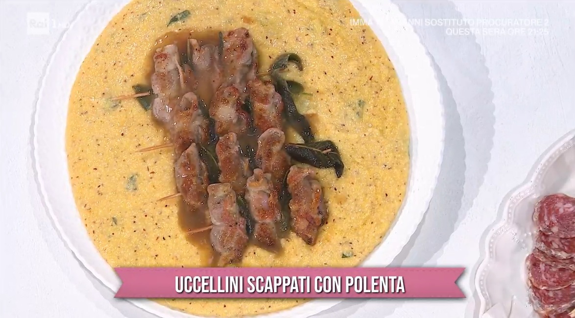 uccellini scappati con polentaCon inatteso anticipo, alle 11:44, Antonella apre le cucine di Rai1 per allietare questa malinconica giornata con il contagioso buonumore del cast. Ad aprire il menu di oggi è Francesca Marsetti, che prepara un secondo piatto tipicamente bresciano, gli uccellini scappati con polenta.