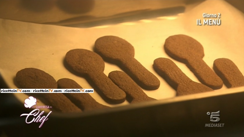 Per i biscottini. Per la frolla, lavoriamo insieme tutti gli ingredienti, quindi facciamo riposare il panetto ottenuto in frigorifero, coperto da pellicola. Stendiamo la frolla ad uno spessore di mezzo cm. Ricaviamo dei cucchiaini con gli appositi stampini e inforniamo 10-12 minuti a 180°.