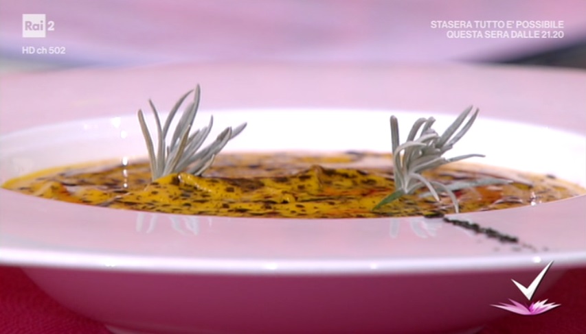 vellutata di zucca con spigola e cicoria (menu di San Valentino) di Monica MicheliLa tutor Monica Micheli, protagonista dello spazio dedicato alla cucina, all’interno del programma condotto da Caterina Balivo su Rai2, Detto Fatto, ha proposto la vellutata di zucca con spigola e cicoria. Di seguito ingredienti e procedimento.