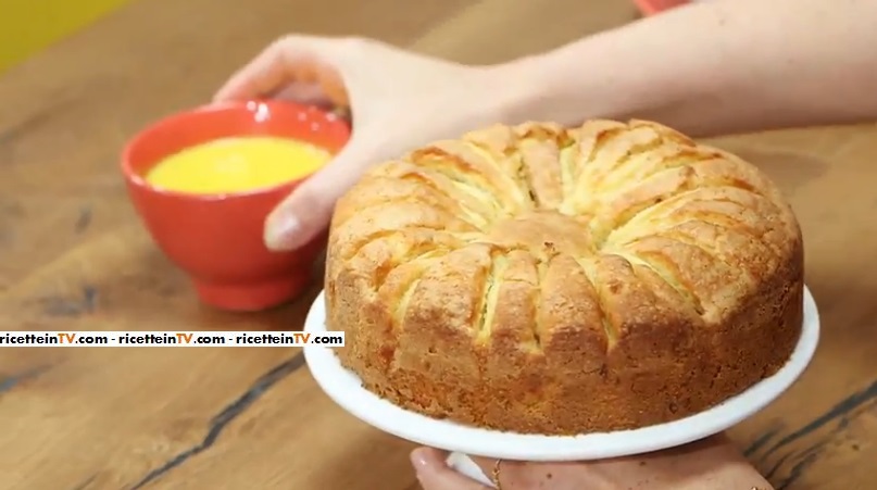 Per la torta: mettete le uova nella planetaria o in una ciotola e con la frusta (o le fruste elettriche) sbattetele con lo zucchero. Aggiungete il burro fuso a filo. Aggiungete la farina setacciata insieme al lievito vanigliato e le nocciole tritate grossolanamente. Mettete il tutto nella tortiera. Prendete le mele, sbucciatele, tagliatele a fettine molto sottili e disponetele in maniera circolare a coprire l’impasto. Prima di infornare, spolverate con zucchero semolato, quindi infornate a 180 gradi per 35 minuti.