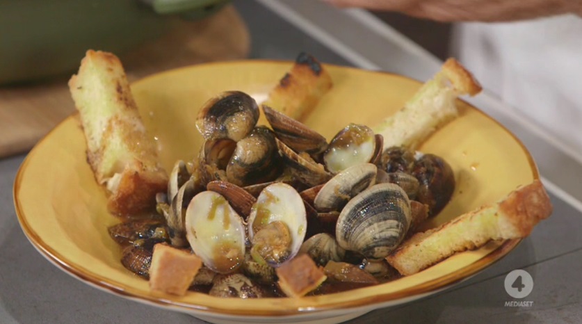 In una padella, scaldiamo un dito d’olio. Quando è ben caldo, lo uniamo alle vongole aperte, quindi sfumiamo con la salsa di soia e lasciamo restringere il fondo di cottura qualche minuto, a fuoco vivace. Serviamo con dei crostini di pane.