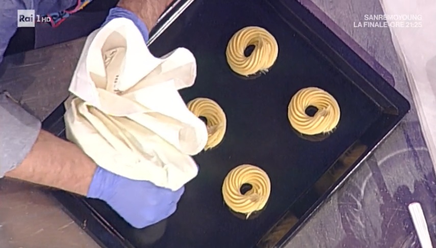 • 500 g acqua, 200 g burro, 10 g sale, 500 g farina 00, 650 g uova intere