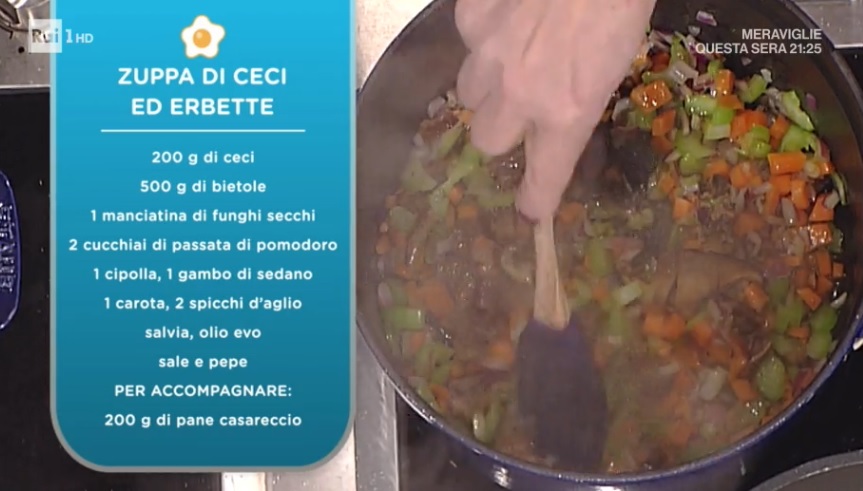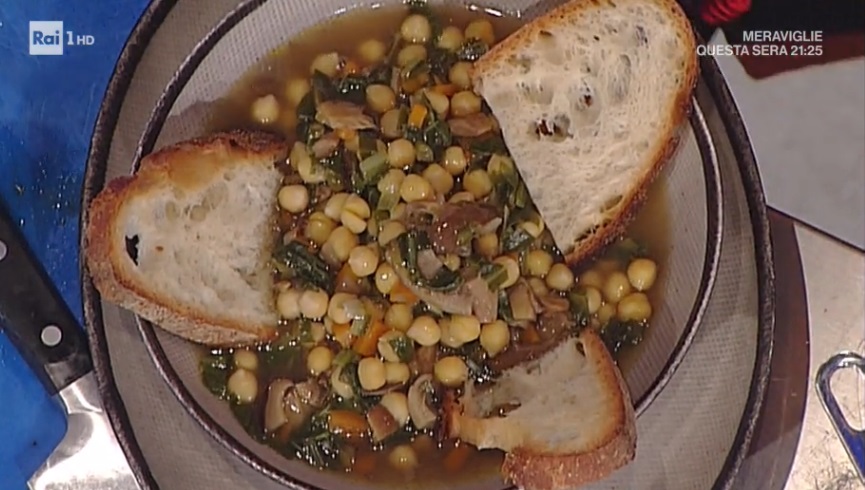 Come ogni mercoledì, la cucina è dominio di Annina Moroni. L’infaticabile cuoca, oggi prepara un piatto salutare ed antichissimo, a base di legumi. Vediamo come preparare un’ottima zuppa di ceci ed erbette.